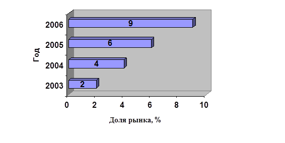 Рис. 2.2. Изменение доли рынка в период за 2003-2006 г.г.